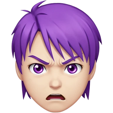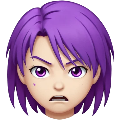 Perso style manga avec des cheveux violet les yeux violet , et un air énervé emoji
