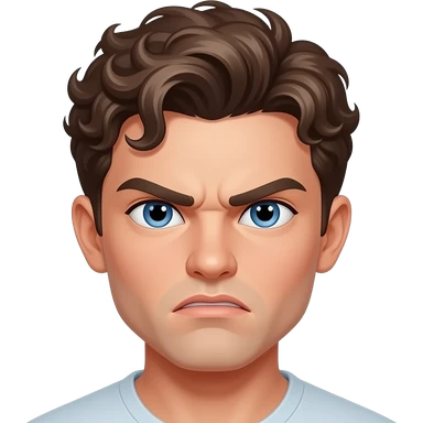 pretty bratz man, short curly brown hair, blue eyes, pale skin, defined jawline. Angry face emoji