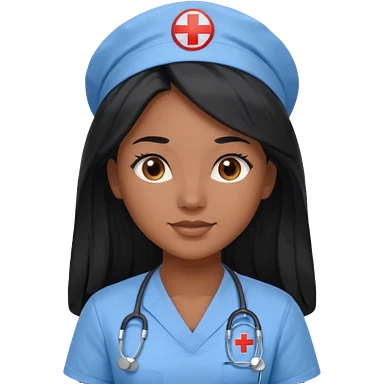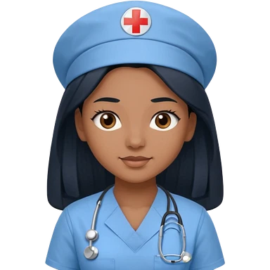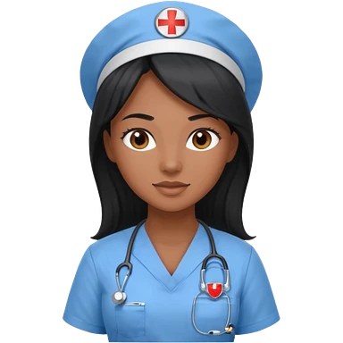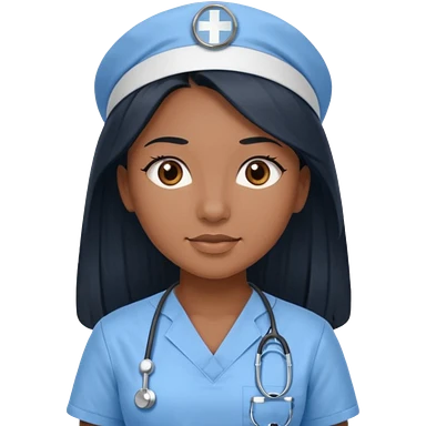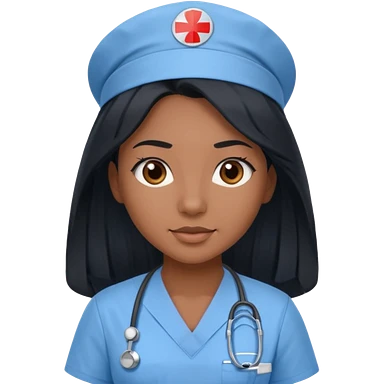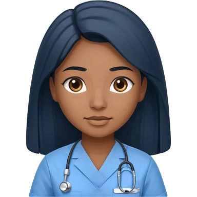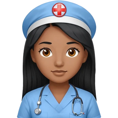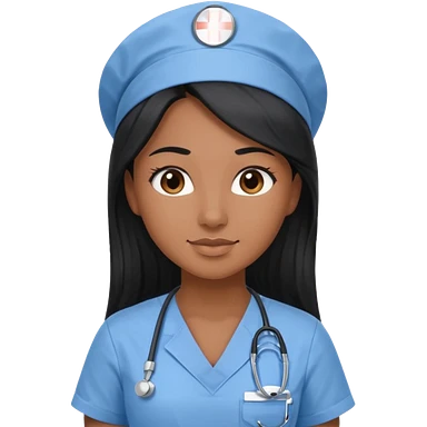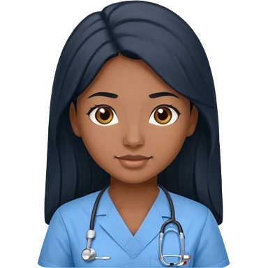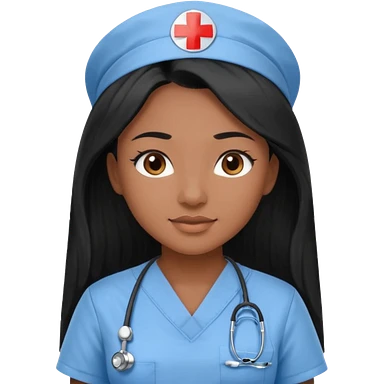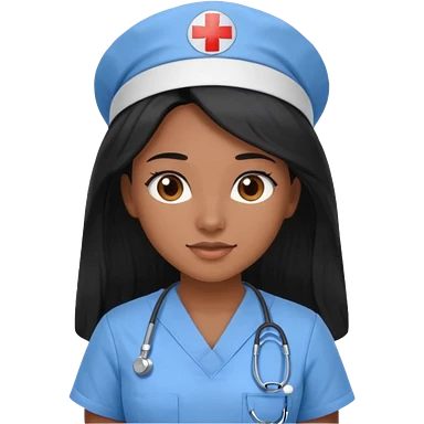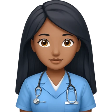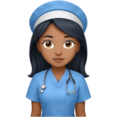 pretty brown skin nurse with long black hair and thin brown eyes in light blue scrubs emoji