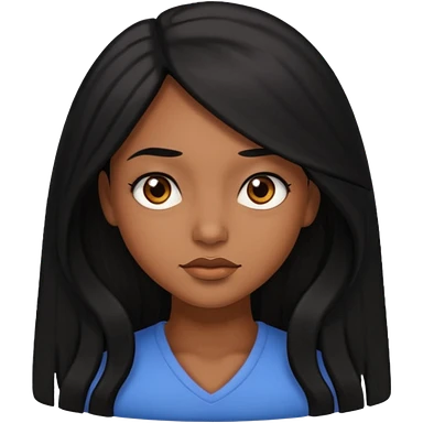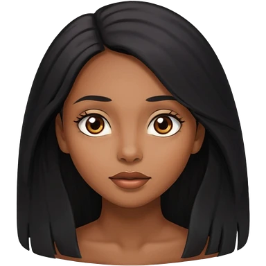 pretty brown skin woman with long black hair and brown eyes looking up emoji