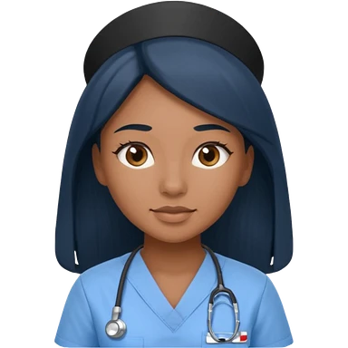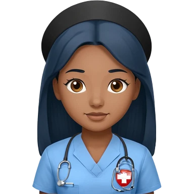 pretty brown skin nurse with long black hair and slanted brown eyes in light blue scrubs emoji