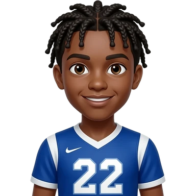African American teenage boy with cornrows wearing a blue and white jersey shirt with 22 on it emoji