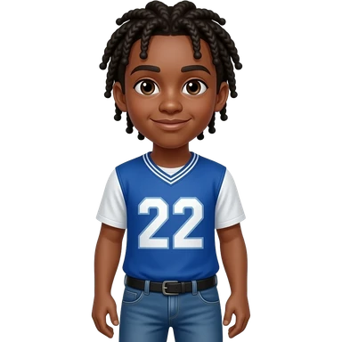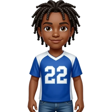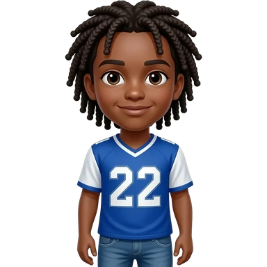 African American teenage boy hair in neck length cornrows wearing a blue and white jersey shirt with 22 on it wearing jeans emoji