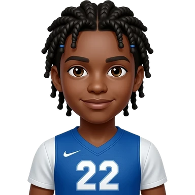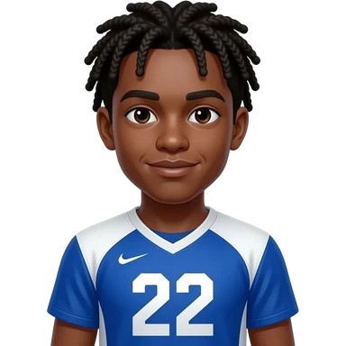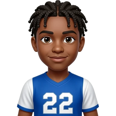 African American teenage boy with cornrow braids braided to the back wearing a blue and white jersey shirt with 22 on it emoji