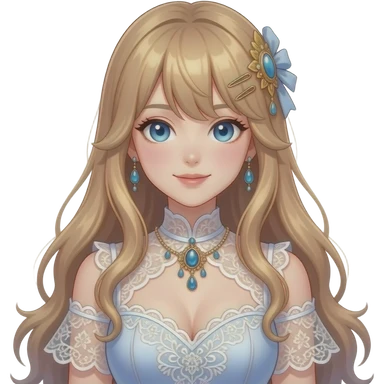 Pretty beautiful animesque style anime gorgeous aesthetic lady woman character with many details and accessories emoji