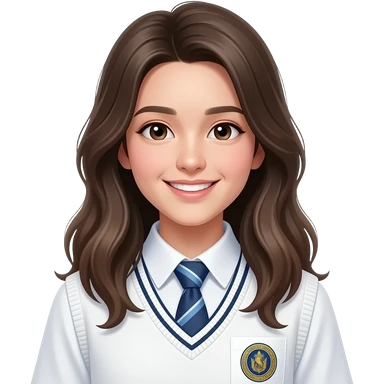 pretty female nursing student with long brown hair, blue eyes inside a classroom at university emoji