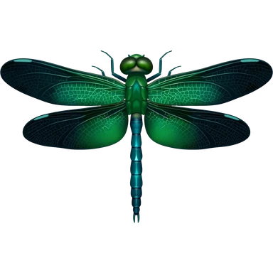 Beautiful highly detailed dragonflly, with emerald green, deep teal and black large shimmery wings emoji