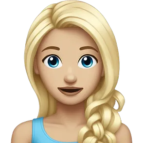 Pretty blue eyed white girl with light pink sweater and dark blonde hair reading cozy emoji