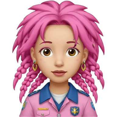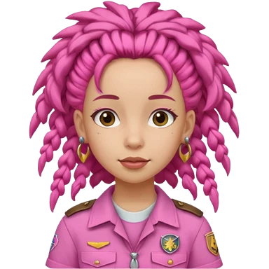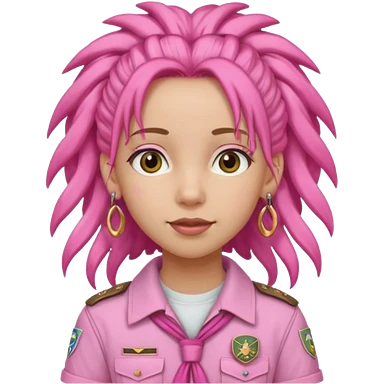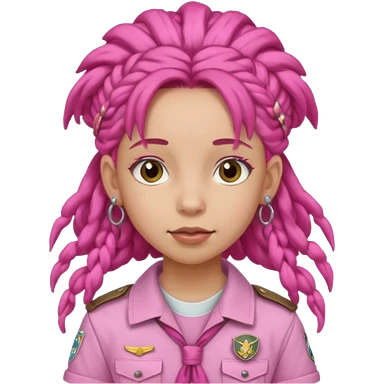 scout girl with pretty pink uniform, pink dreadlocks, and big earrings emoji