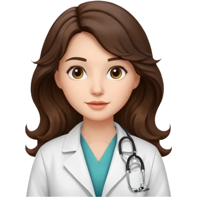 aesthetic emoji of a pretty brunette with long wave hair woman with a white coat doctor emoji