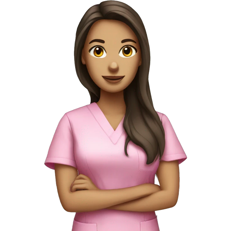 pretty brunette nurse with long hair in pink scrubs emoji | AI Emoji Generator