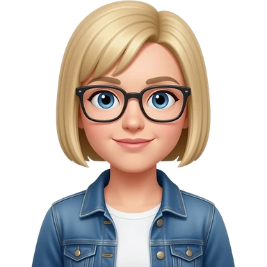 hyperrealist caucasian square cut blonde hair blue eyes squared glasses,white top jean jacket emoji