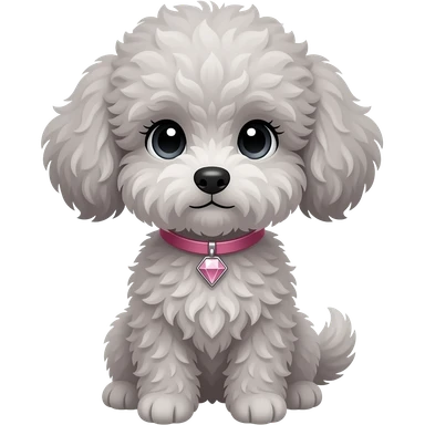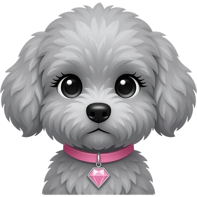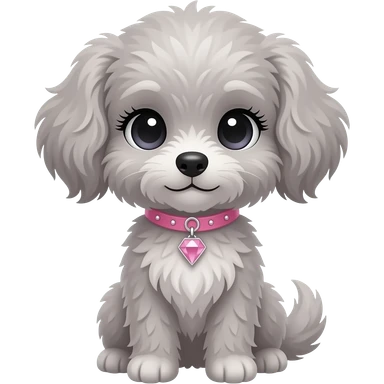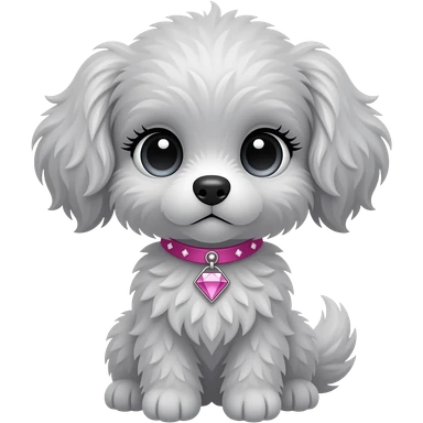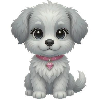 pretty dark grey fluffy girl puppy, long eye lashes, pink diamond collar emoji | AI Emoji Generator