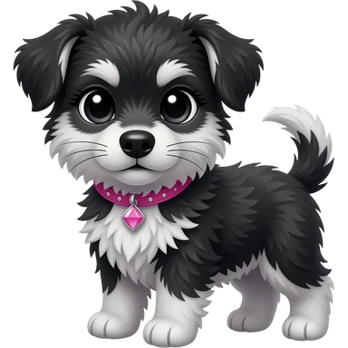 black and grey fluffy girl puppy, long eye lashes, pink diamond collar emoji