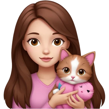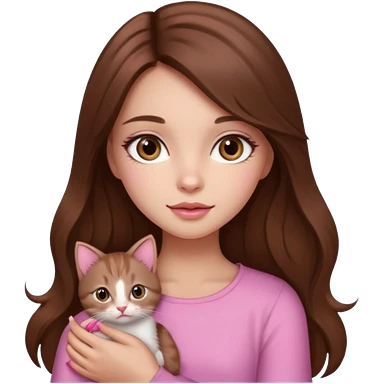 Pretty girl long hair Brown makeup pink kitten emoji | AI Emoji Generator