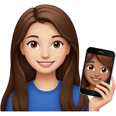 pretty girl long brown hair, blue eyes, makeup with black kitten and pink lips emoji
