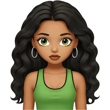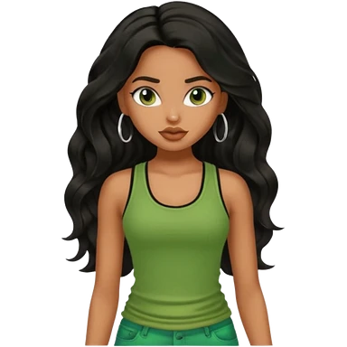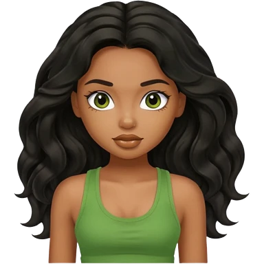 a pretty bratz brown girl with long wavy black color hair and green tank top on emoji