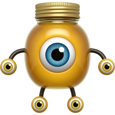 A honey bottle with one single eye and legs and arms with yellow eye emoji