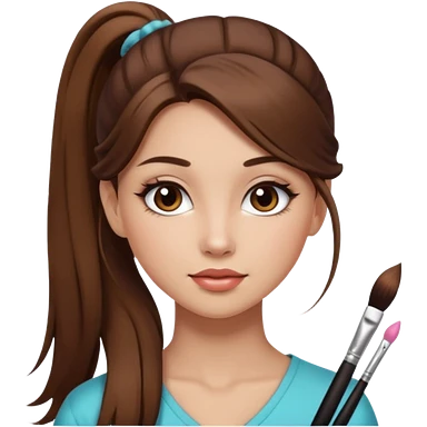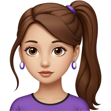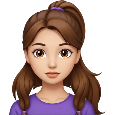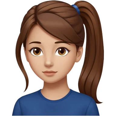 pretty girl brown long hair makeup ponytail on left shoulder, dark blue shirt emoji