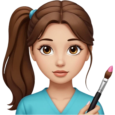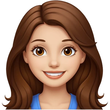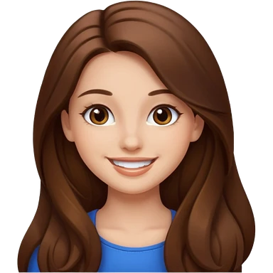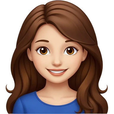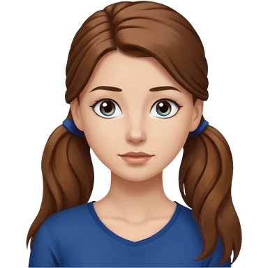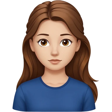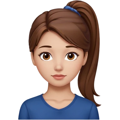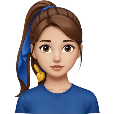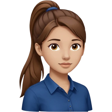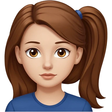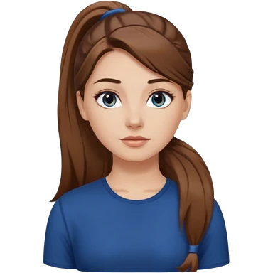 pretty white girl brown long hair makeup ponytail on left shoulder, dark blue shirt emoji