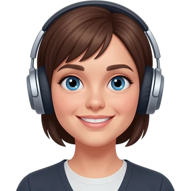 pretty long burnette blue eyes girl with headphones emoji