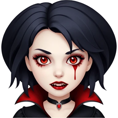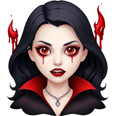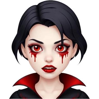 pretty vampire girl with red eyes fangs blood pretty smoky eye makeup emoji