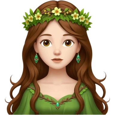 pretty royal queen woman with grass green eyes and straight brown hair emoji