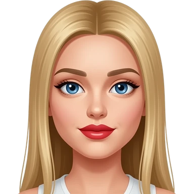 pretty girl Long straight blonde hair with blue eyes and white and red glossy lips emoji