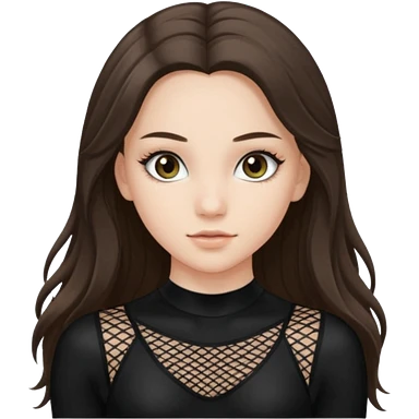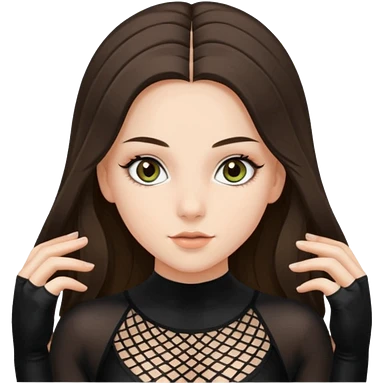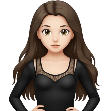 pretty white brunette teen long hair with hazel eyes in a black leotard and fishnets emoji