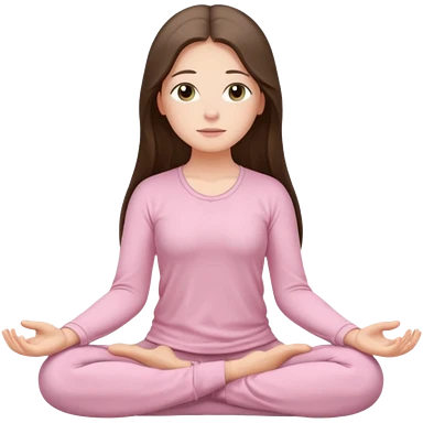 pretty white brunette teen long hair with hazel eyes in light pink meditating emoji