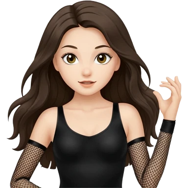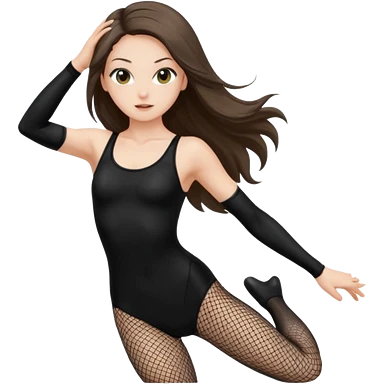 pretty white brunette teen long hair with hazel eyes in a black leotard and fishnets dancing emoji