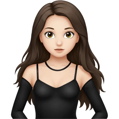 A teen girl with dark coffee brown hair, green doe eyes and big eyelashes. She is wearing a light pink tank top with a v neck like. She resembles Aria from pretty little liars emoji