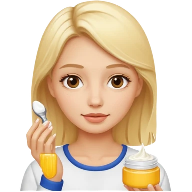 haz una chica rubia haciendose su skincare emoji