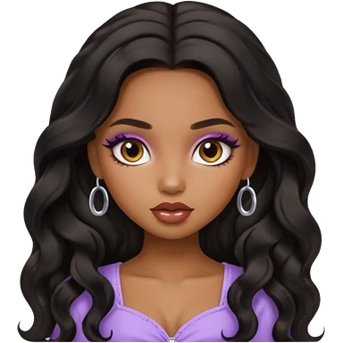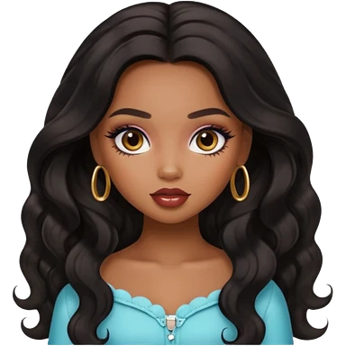 Pretty Latina woman with long black wavy hair and black shirt emoji