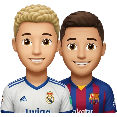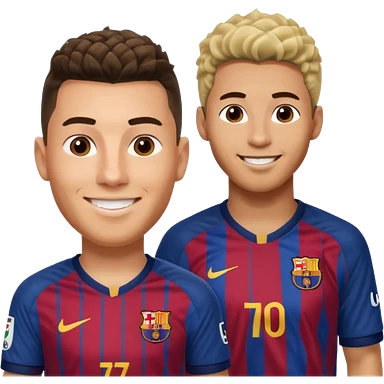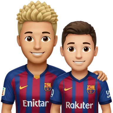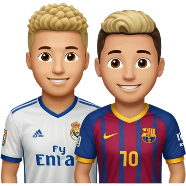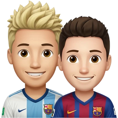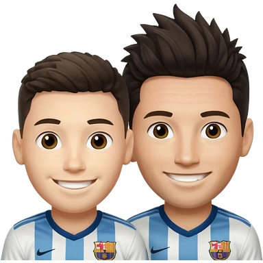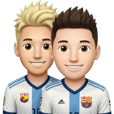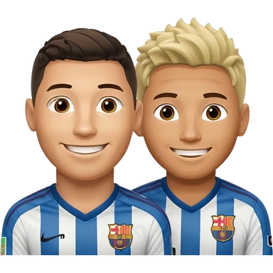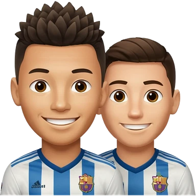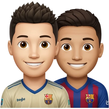 Prime noodle hair ronaldo and prime 2012 messi Smiling in one Photo and make it realistic emoji