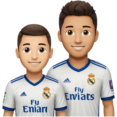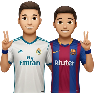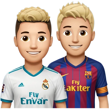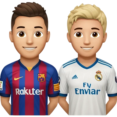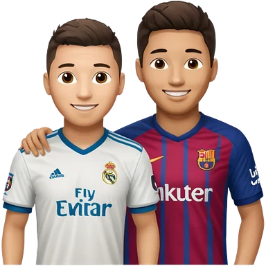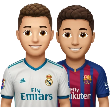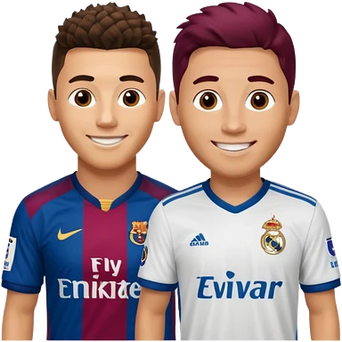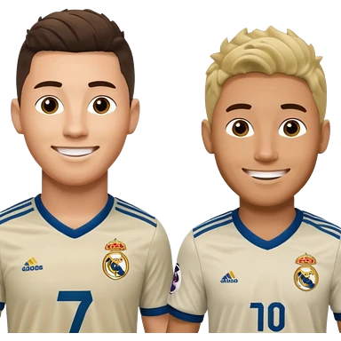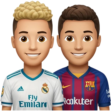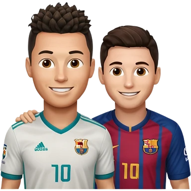 Prime noodle hair ronaldo and prime 2012 messi Smiling in one Photo and make it realistic Ronaldo wearing Number 7 With Madrid and Messi wearing number 10 with barca emoji