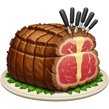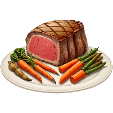 Plate of prime rib baked potato broccoli and parsnip emoji