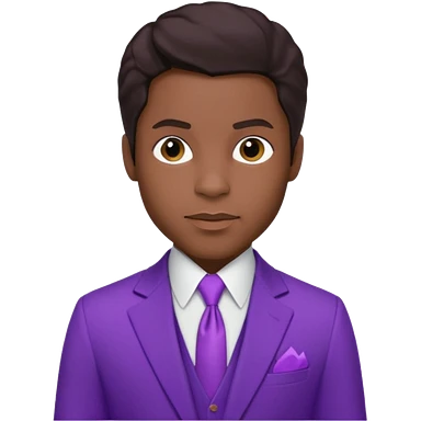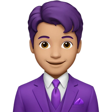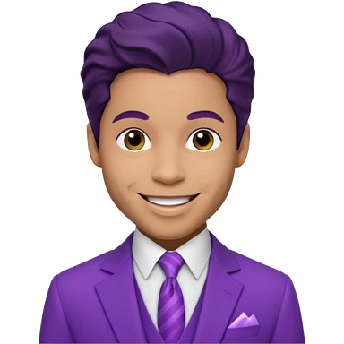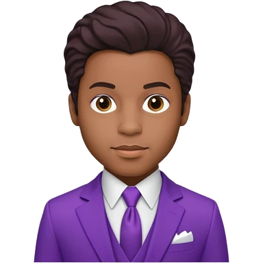 Prince Rogers Nelson with dark brown hair, purple sequin jacket, white shirt emoji