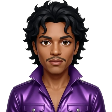 Prince Rogers Nelson with brown eyes, black hair, purple metallic outfit emoji