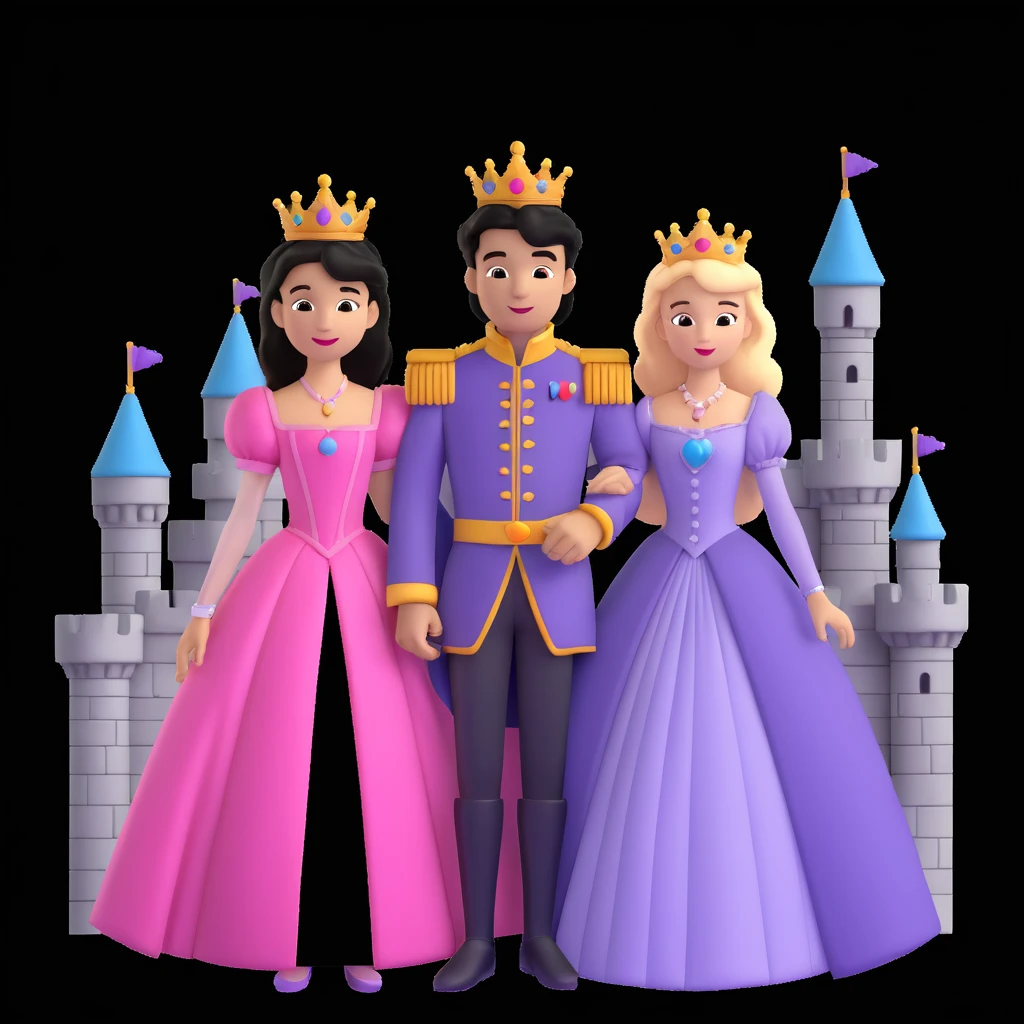 prince and princess disny dress close up photo in castle emoji | AI Emoji Generator