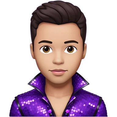Prince Royce with dark brown hair, dark purple sequin outfit emoji | AI Emoji Generator