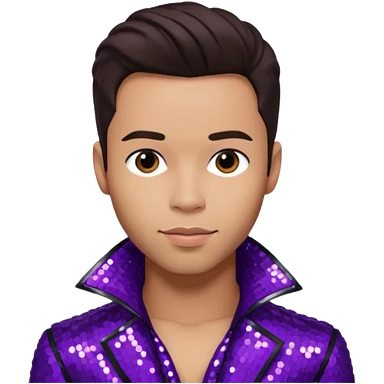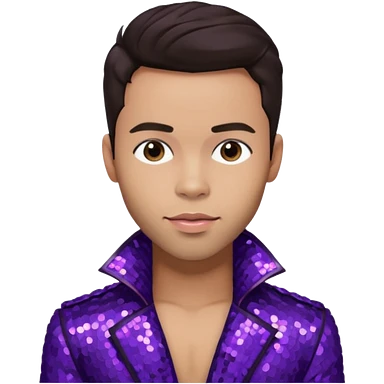 Prince Royce with dark brown hair, dark purple sequin outfit emoji