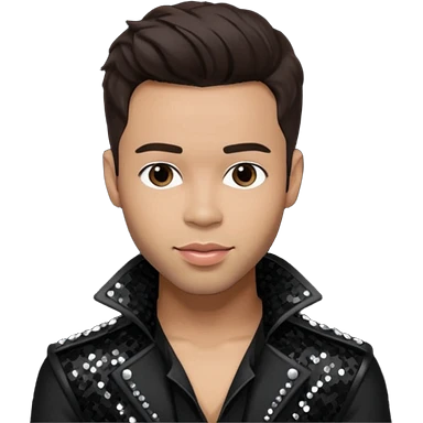 Prince Royce with dark brown hair, black sequin outfit emoji