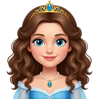 Princesa con cabello largo lacio con fleco castaño de ojos cafés con corona princesa tierna y sexy emoji