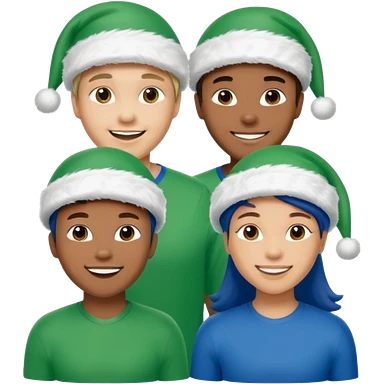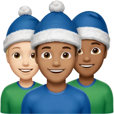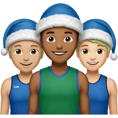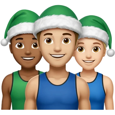 crie a imagem de 3 atletas de modalidades diferentes, usando um chapeu de papai noel das cores verde e azul. emoji