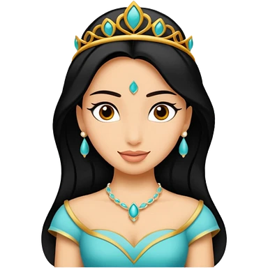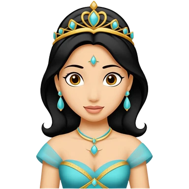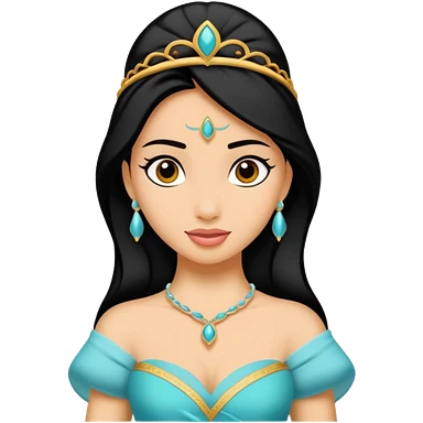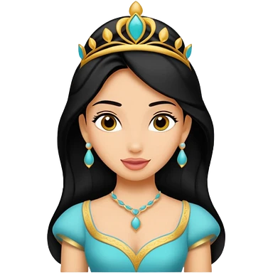 Princess with long glam curled hair, dark brown eyes, light skin tone. emoji