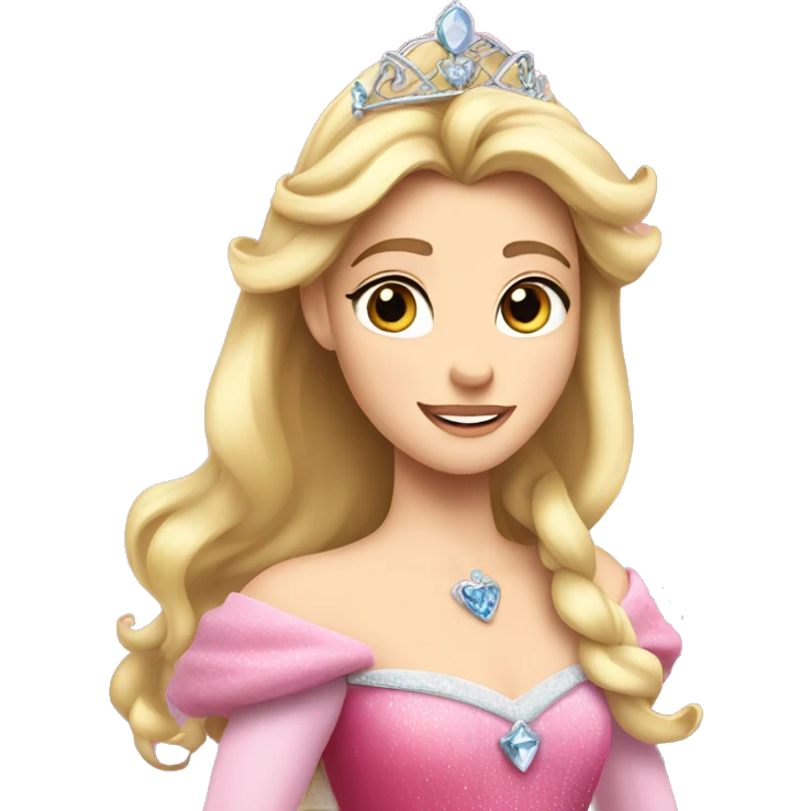 Princess Aurora with a gold tiara and pink dress, smiling emoji