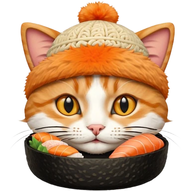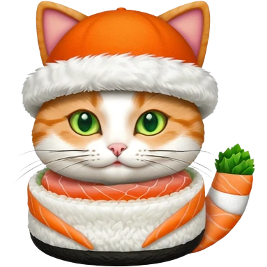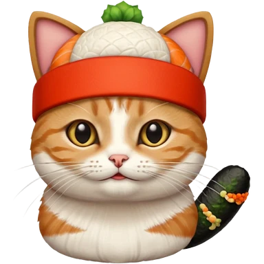 cat wearing a sushi roll as a hat, realistic sushi textures emoji
