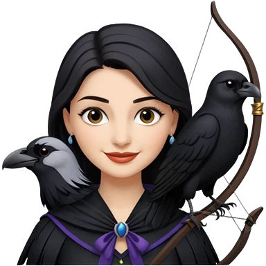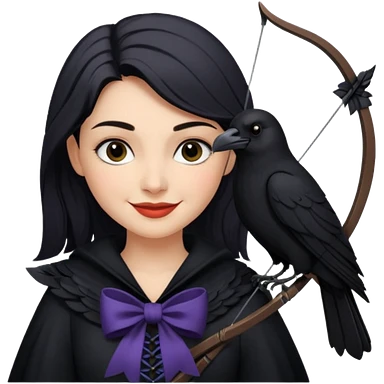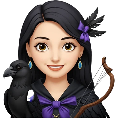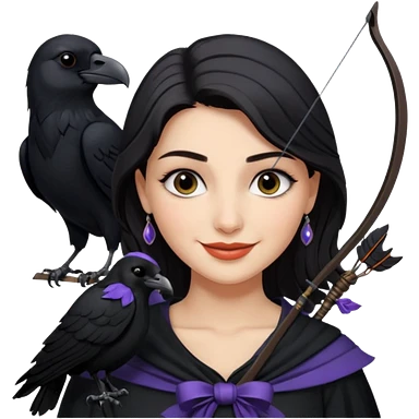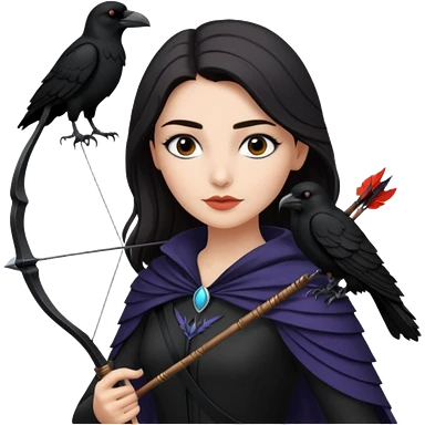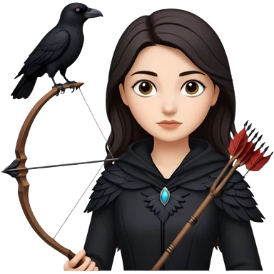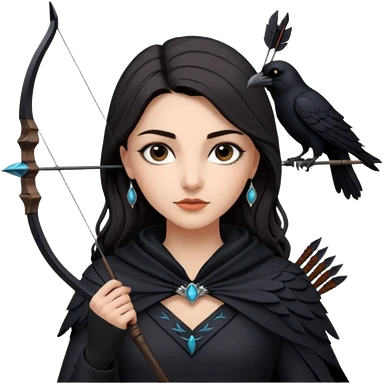 Alysanne Blackwood from Game of Thrones. She is known as black aly and is the Wife of Cregan Stark. I have her looking like Hande Erçel. Show her with a raven and a bow and arrow emoji