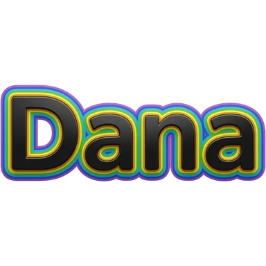 name "Dana" in black typography lettering, each color of the rainbow as a border outlined around each letter, isolated, 3d rendering, no emoji icons no emoji faces and must have no human figures emoji
